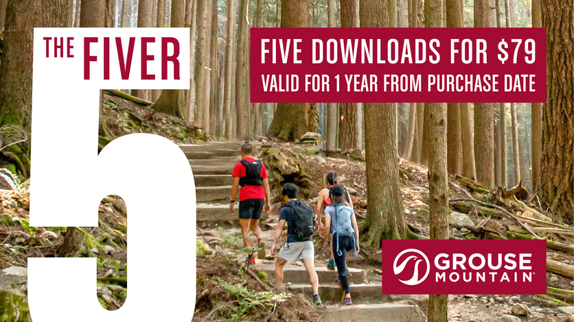 It's time to conquer the Grouse Grind with The Fiver Download Pass. Get 5 Red Skyride or Blue Grouse Gondola downloads for the price of 4!