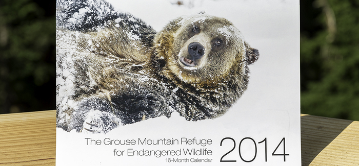 Up here at Grouse Mountain, we are passionate about research, education and conservation of endangered wildlife. New in 2013, we are excited to launch our 16-month calendar featuring amazing snapshots of numerous Grouse Mountain wildlife residents including Grizzly Bears Grinder and Coola, our Birds in Motion and many more! Perfect for back-to-school or an early start to your Christmas shopping, proceeds from our 2013-14 calendar benefit the Grouse Mountain Refuge for Endangered Wildlife and can be purchased at our Spirit Gallery Gift Shop located in the Chalet or the Grizzly Lookout.