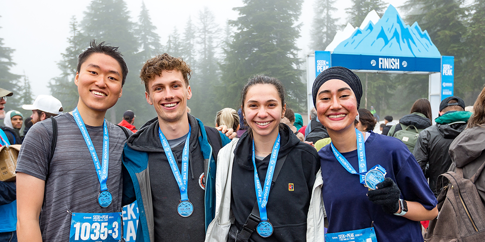The challenging 16km course starts by the beach at Ambleside Park in West Vancouver, winds its way through North Vancouver, then heads up the legendary Grouse Grind to The Peak of Vancouver. With an awe-inspiring 1,400m climb, Seek the Peak will test your fitness, stamina and overall mental toughness. Face the 16km course alone or tackle it in a team of 2-4, splitting up the four legs.