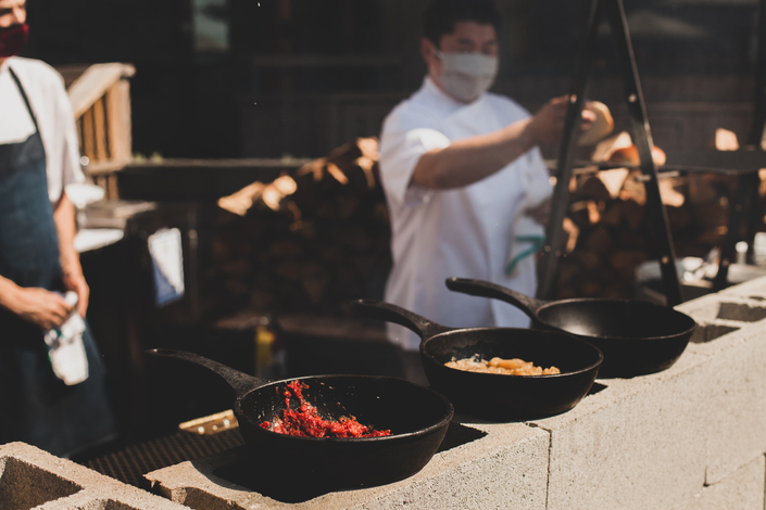 The wood-fired grill is a simple yet effective design – allowing for multi-level open-fire cooking at a variety of temperatures, providing the ability to perfectly cook a wide-variety of ingredients and dishes. Utilizing wood-fire cooking is a means of connecting the food being prepared to the natural surroundings of the mountaintop. This specially constructed grill will act as the centerpiece to this series, creating a multi-sensory experience.