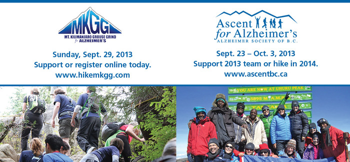 Registration is still open for the MKGG! Sign up at hikemkgg.com. To learn more about Ascent for Alzheimer’s, including how to join the 2014 team, visit ascentbc.ca.