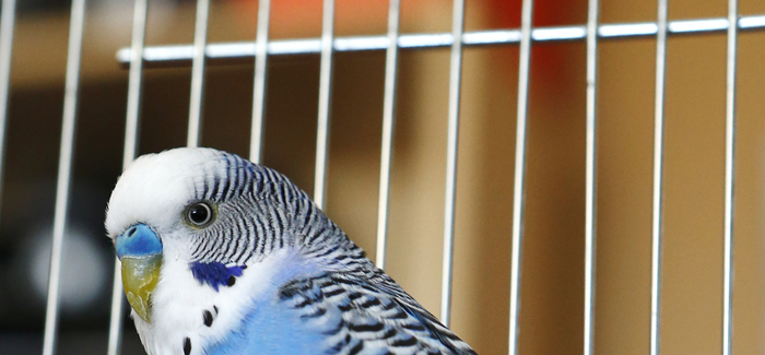 Since they are social birds, I was able to play some Budgie calls on my iPhone and draw him in close. He still wouldn't come directly to me, so after some time I was able to get him to the back deck of the office where I was able to catch him in a butterfly net. He's now resting comfortably in a temporary bird house while we try and find his owners.