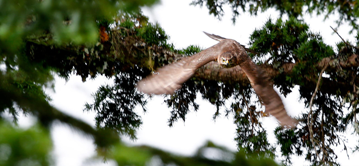 I was woken this morning by a high-pitched chirping bird call and upon further investigation I discovered that a pair of young Sharp-shinned Hawks, or Sharpies as they are affectionately referred to, were practicing their hunting outside the Wildlife Centre here on Grouse Mountain. Their chirps seemed to be out of frustration at their lack of success.