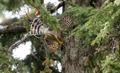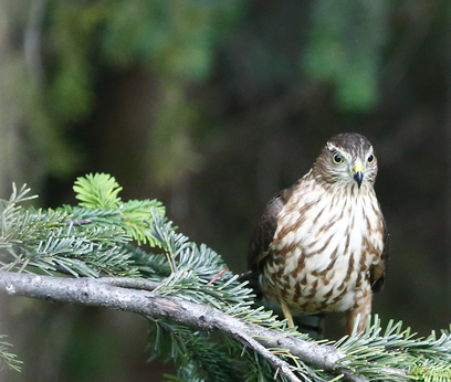 Keep an eye out next time you are in the woods and if you see a blurr of feathers go darting by in pursuit of another bird, you've mostly likely seen a Sharp-shinned Hawk.