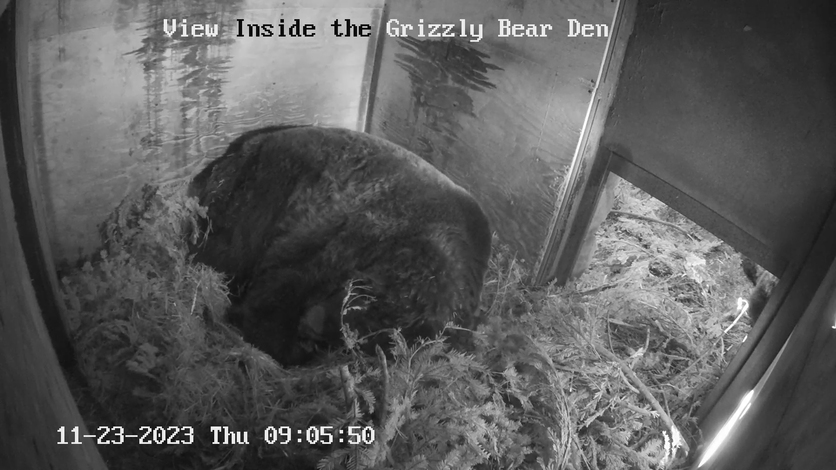 Today marks the first official day of the 2023/2024 hibernation/winter dormancy period for our two Grizzly Bears - Grinder and Coola.