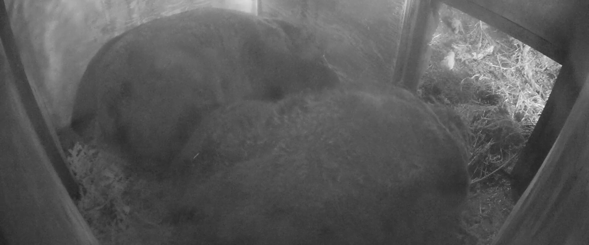 Please follow along on Grinder and Coola's webcam page located here .  This is a live infrared view from inside their sleeping chamber.