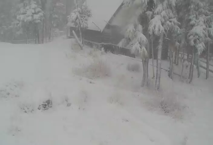 Today the snow fell and covered up the bears' den as Grinder and Coola entered a deep sleep inside.