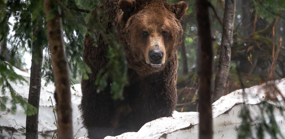 Today we were happy to open up Grinder and Coola's large Upper Pond Habitat for the year. Our resident Grizzly bears emerged on April 28th into their small Hibernation Habitat while our team worked on clearing snow and preparing this larger area. Today it was ready to go! The boys wasted no time exploring their familiar haunts and going for that first swim of the year in their ponds. They even found some tasty frog eggs as a treat!