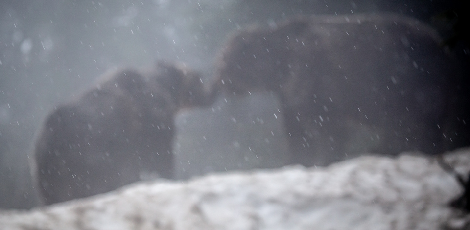 Even though it was a rainy day on the mountaintop, both bears enjoyed frolicking in the snow and going for a swim in their ponds which are still surrounded by snow! In fact, we often find the bears prefer the cooler and wetter temperatures and are definitely more active than on the warm days when naps in the shade are in order.