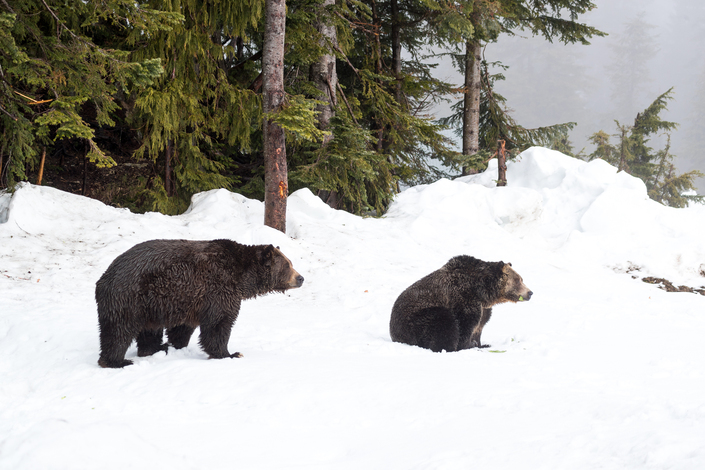 When we opened the gate to their larger habitat both bears immediately knew it was time to explore!  Grinder, being the bolder bear, was first through but Coola was right on on his tail.  The bears did several laps around the habitat looking for food, left over goodies and checking out their favourite trees, beds and ponds.  They did some wrestling together too!