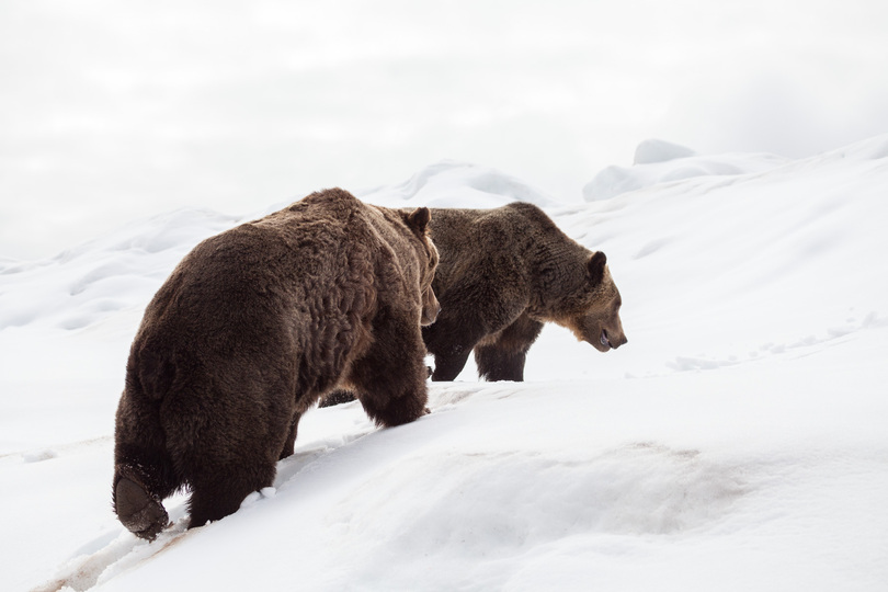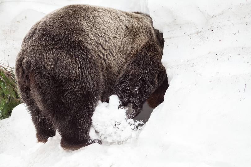 This morning was one of snow play and tunnel digging for our two resident Grizzly Bears, Grinder and Coola. Our mountain teams had been working hard over the past couple weeks to prepare the 2.5 acre Upper Pond habitat for Grinder and Coola.