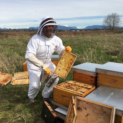 Since October the bees have been on their own at a low-land site in the Fraser Valley staying warm. They produce extra honey near the end of the season to see them through the winter. The Queen's lay special worker bees that will live longer than normal but stay in the hive for the winter keeping the queen warm and offering protection. The workers cluster around the Queen and as a group they move around and slowly consume the honey stores.