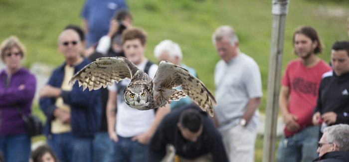 Our Birds in Motion birds have been out and flying in this gorgeous summer weather we have been receiving lately. Each demonstration features an owl, hawk, falcon and an eagle. The birds literally fly right over your head!