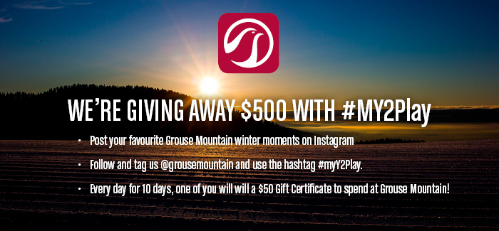 Just post your favourite Grouse Mountain winter moment on Instagram. Follow and tag us @grousemountain using the hashtag #myY2Play. We will direct message each day's lucky recipient.