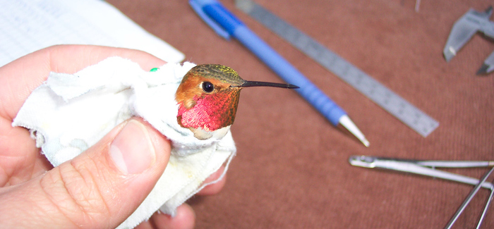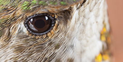 Here are a couple great macro photos of one of the females we banded yesterday. The first shows a closeup of the band on her foot and the second shows a unique up-close view of a hummingbird eye!