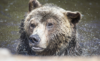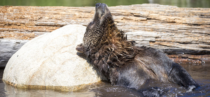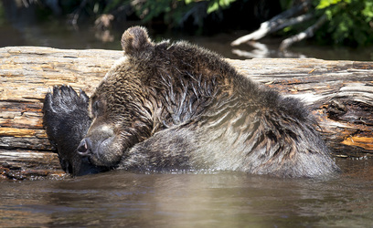 With all this warm weather we've been having this summer, our two orphaned Grizzly Bears, Grinder and Coola have had to spend more time in the water to stay cool.