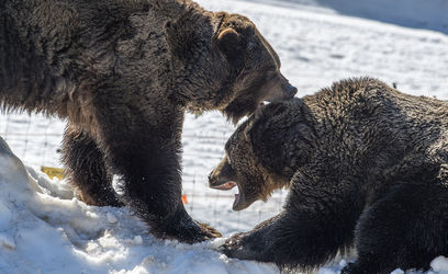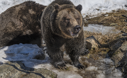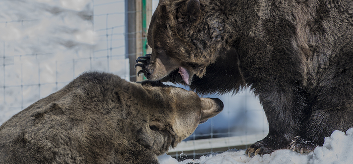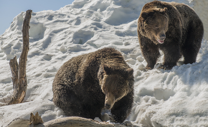 The bears emerged and checked out their outdoor hibernation yard, munched on a little bit of spring grass and strategically hidden lettuce, before rolling and playing in the snow. They looked very healthy and energetic after their hibernation period.