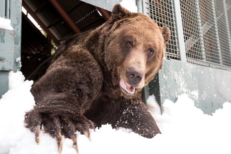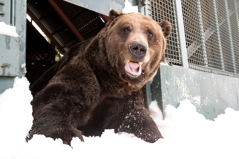 At 19 years of age, Grinder and Coola are in their prime. They remain best friends, and are never far from each other, which would be unusual for two male Grizzlies in the wild. You certainly have to get along to hibernate together for 5 straight months, and these bears have done it effortlessly every year since they were cubs.