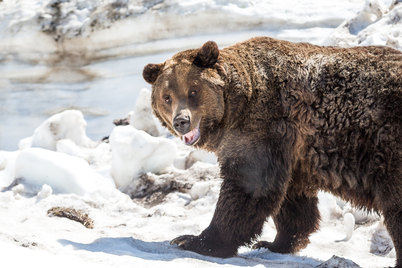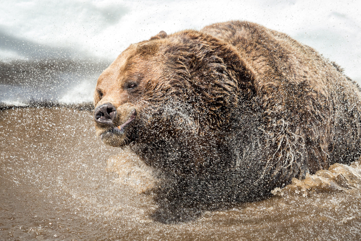 Grizzly Bears love the water and are excellent swimmers. After spending 5 months inside their den hibernating the bears are ready to dunk in the water and wash off the dust.