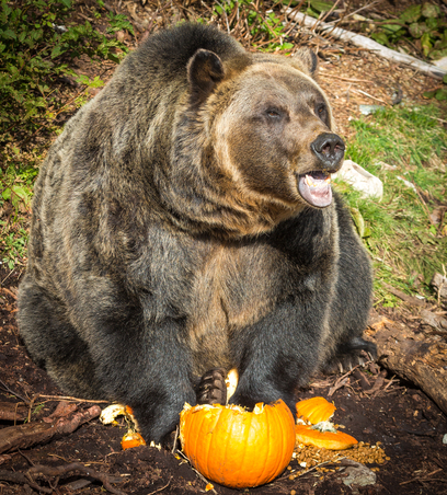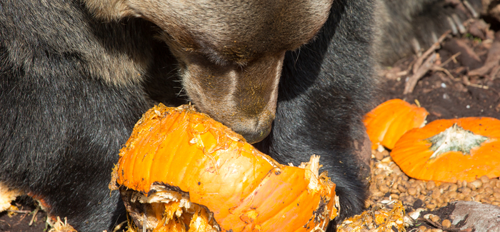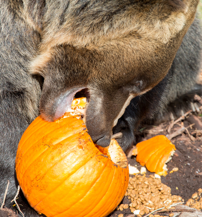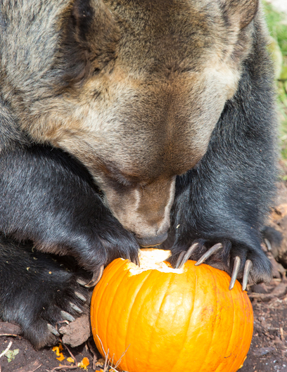 They do not last for very long as the bears eagerly carve up their pumpkin treats using their powerful front claws and feast on the tasty items inside.