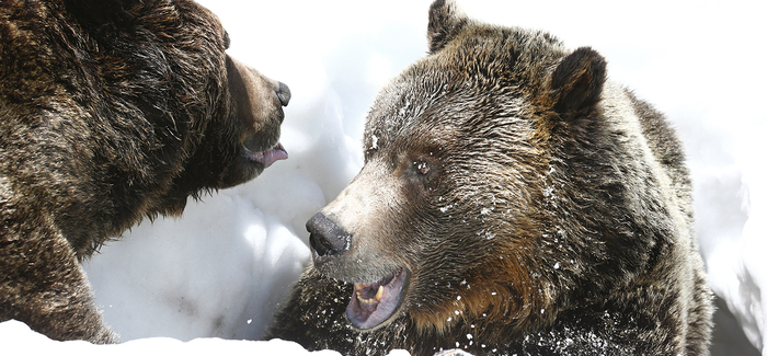 Emerging last Friday, April 19th, from their bear den, Grinder and Coola have been enjoying the outdoor snow and now the warm sunshine as well!