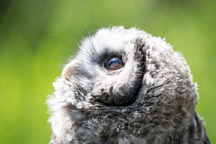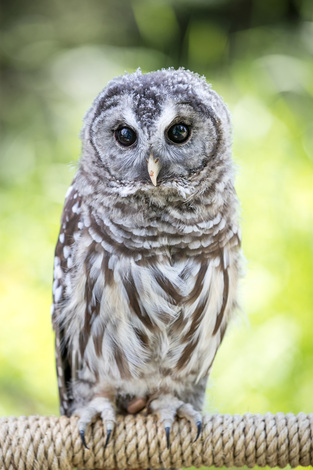 This is the new male Barred Owl (Strix varia). He came to Grouse Mountain on April 25th, 2019, from the Northern Spotted Owl Captive Breeding Program in Langley, BC. after being hatched on April 10th, 2019.