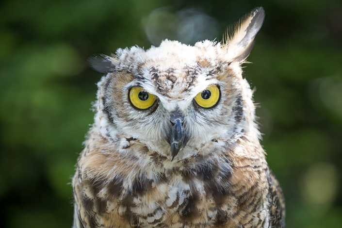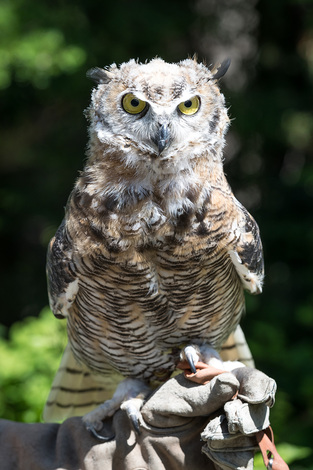 New female Great-horned Owl (Bubo virginianus). She came to Grouse Mountain from the Canadian Raptor Conservancy in Ontario after being hatched in March 2019.