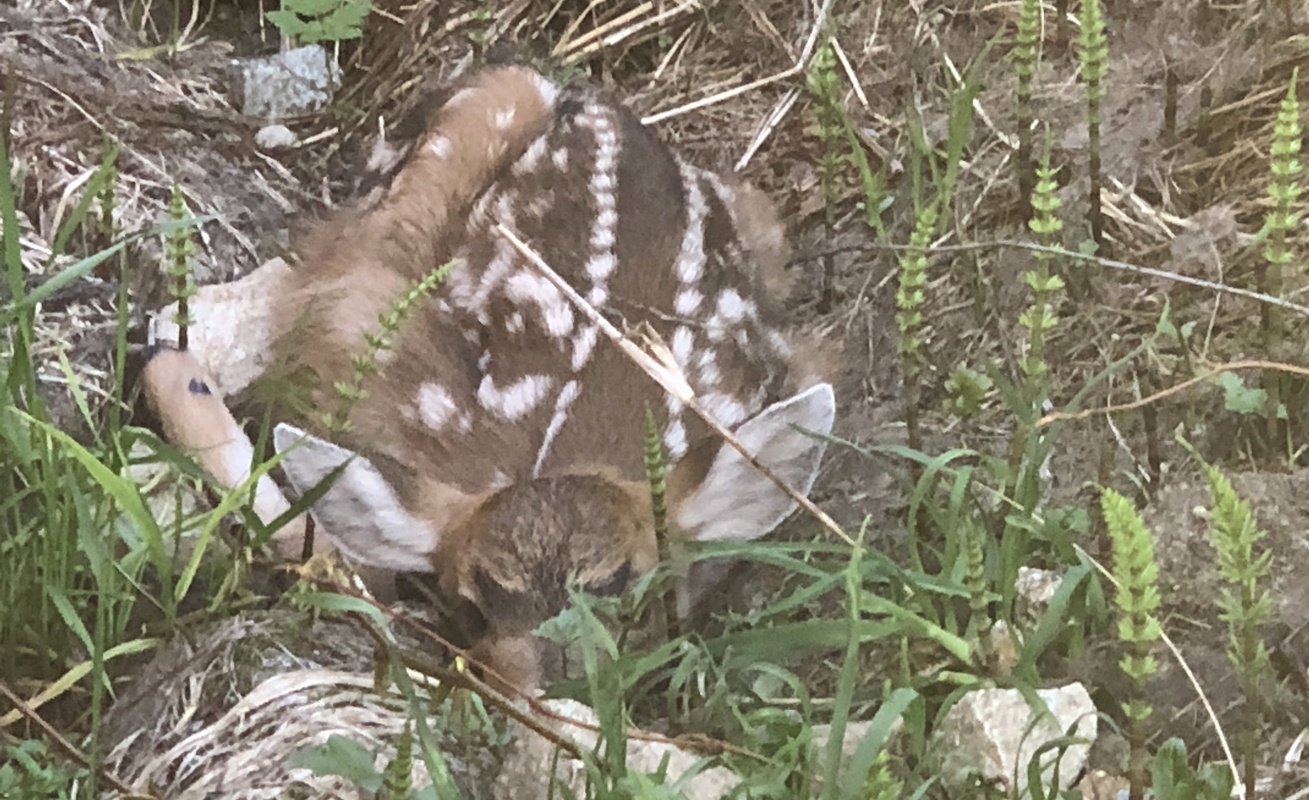 If we handle the young we ruin this protection, reveal their hiding spots and most likely spook the young deer to run, making it hard for the mother to reconnect with them later.