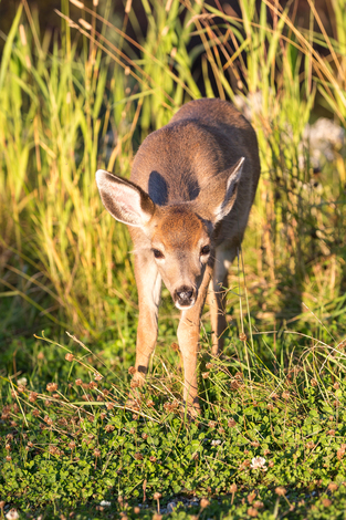 Baby black-tailed deer appearing on mountain
