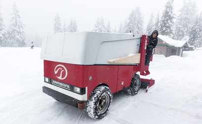 The Attractions Crew is an important division of our Mountain Operations team and is dedicated to keeping areas like the Skating Pond, Sliding Zone and Light Walk in top shape, ready for you to enjoy. Among the many jobs the Attractions Crew performs, driving the Zamboni may be one of the most unique. Did you know, the Grouse Mountain Zamboni is the only one used on a mountaintop? In fact, Mr. Zamboni himself once visited Grouse Mountain from California to check out and drive our Zamboni!