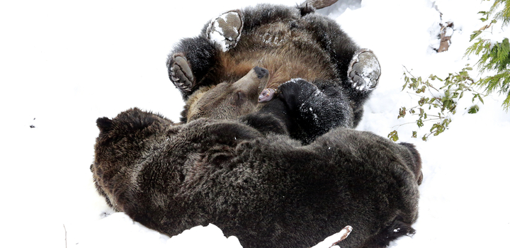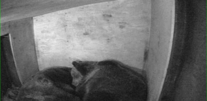 Spending more time out of sleeping den.... Grinder and Coola, our two sleepy grizzly bears, have begun to move around...