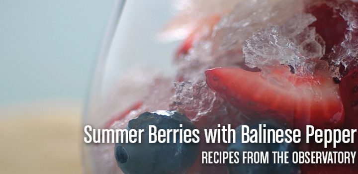 Recipes from The Observatory. Summer Berries with Balinese Pepper and Wild Mountain Honeymuscat wine granité, glace...