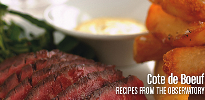Recipes from The Observatory. Cote de Beoufhand made chips, Béarnaise sauce, button onions and watercress Serves 6-8