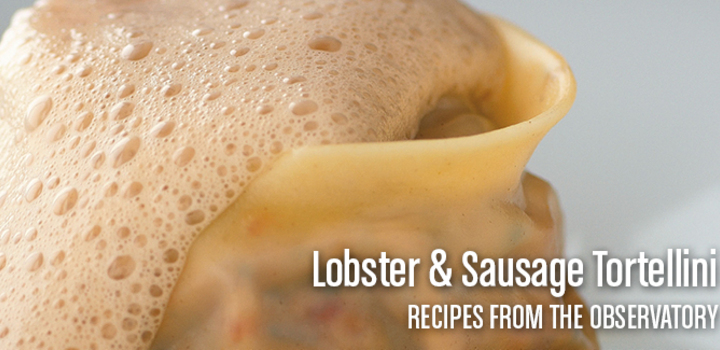 Recipes from The Observatory. Atlantic Lobster and Merguez Sausage-Stuffed Tortellini clams, fennel fondue, lobster...