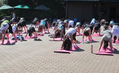 We were encouraged to give our neighbors on the mats next to us a high five. It was wonderful to make such a nice connection with others practicing yoga in nature. How amazing it is to do a forward fold and out of the corner of your eye you can see a tree or raven flying around.
